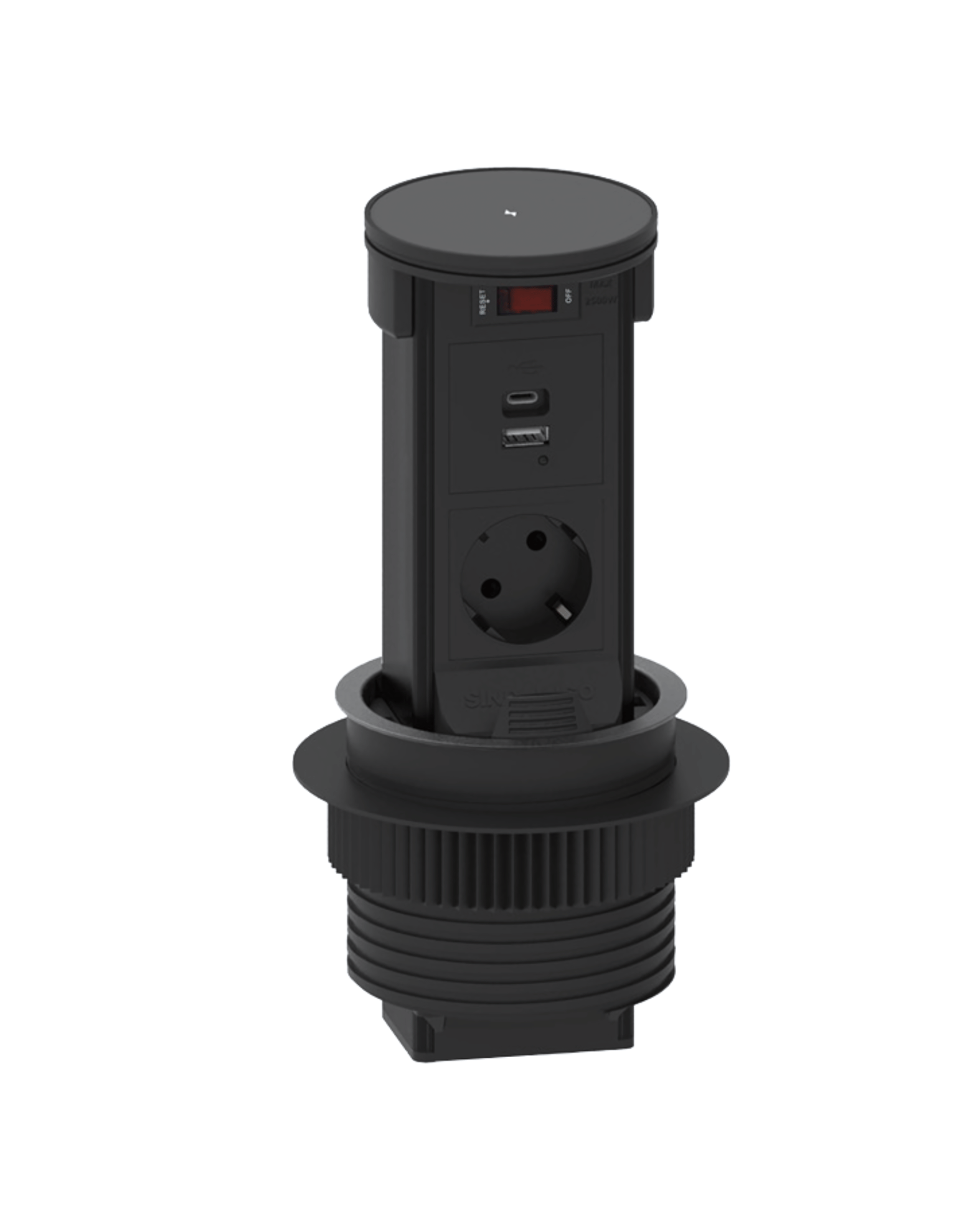 Gemotoriseerde Pop-Up Elevator Stekkerdoos met draadloos laden, 30W USB-C (PD) & USB-A en 1X Stopcontact